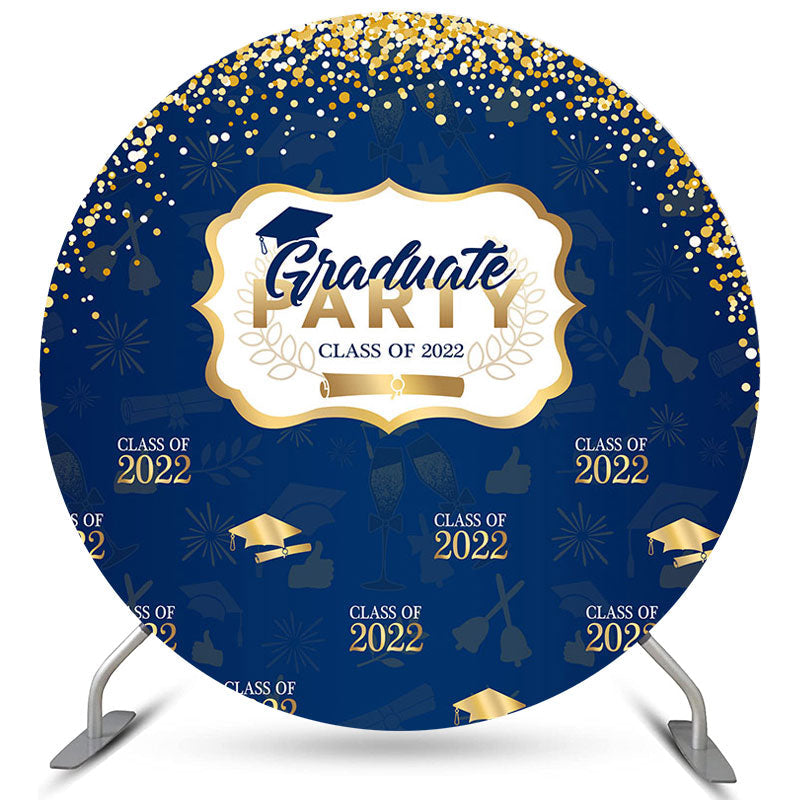 Toile De Fond Ronde De Fête De Remise Des diplômes Bleu Marine À Paillettes D'or