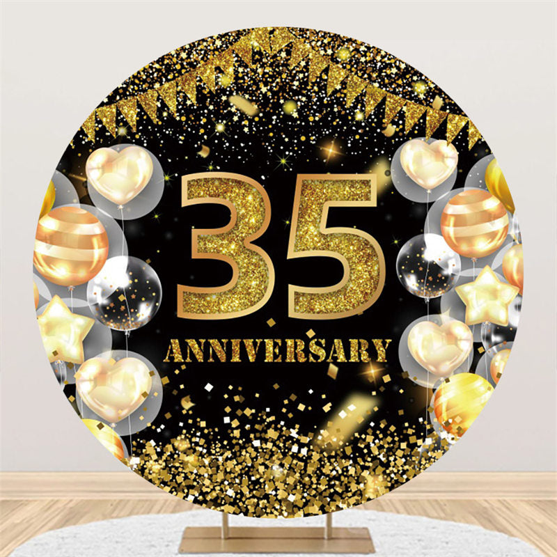 Toile de fond ronde Glitter Gold 35 anniversaire pour mariage