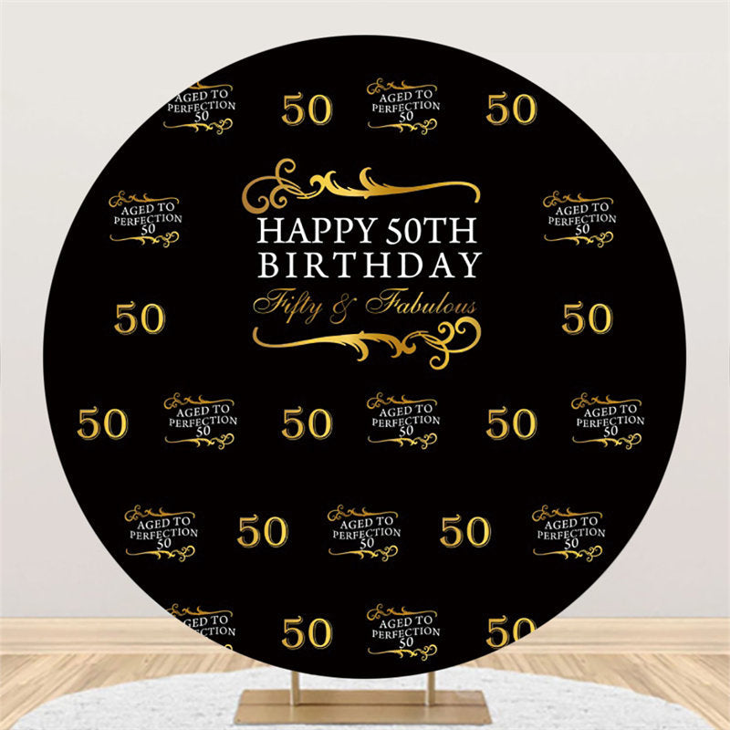 Toile de fond ronde joyeux 50e anniversaire noir et or