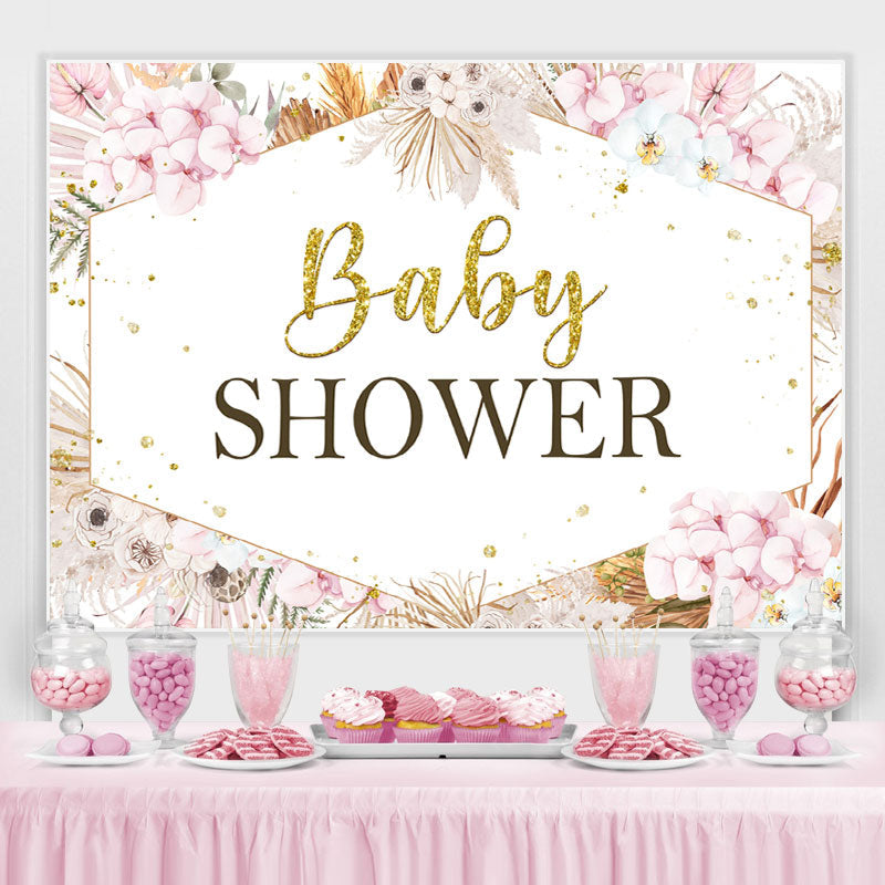 Toile de fond rose Floral Gold Glitter Baby Shower pour fille