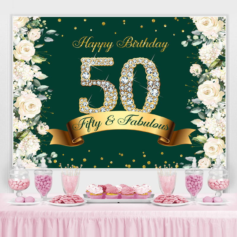 Toile de fond vert floral et paillettes joyeux 50e anniversaire