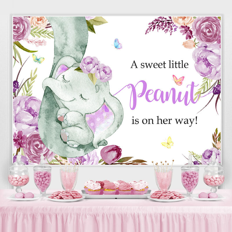 Toile de fond violet Floral Lovely Baby Elephent Baby Shower