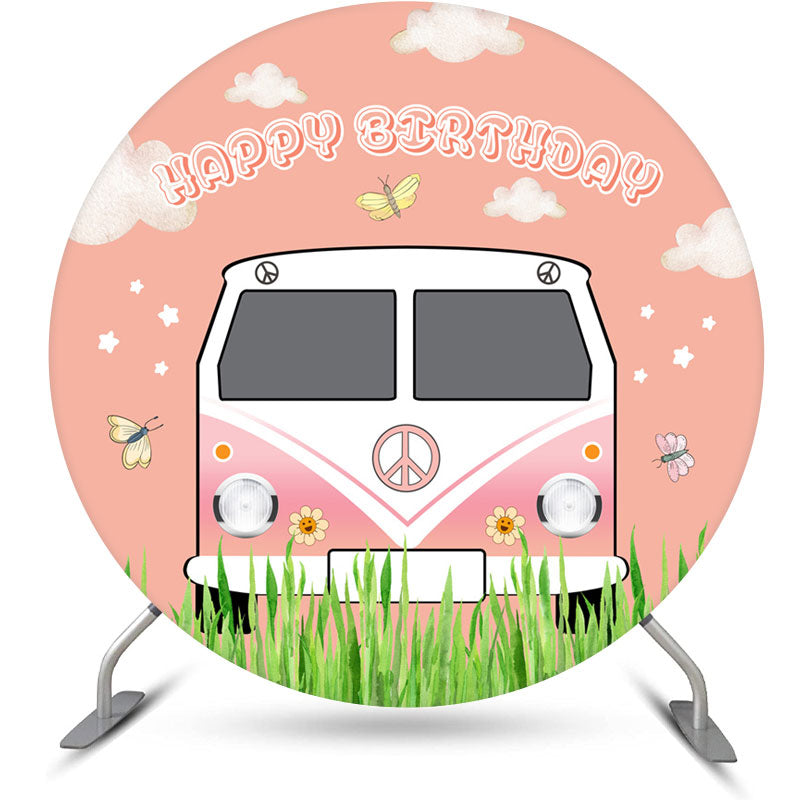 Voiture de printemps douce à l'extérieur de la toile de fond d'anniversaire du cercle